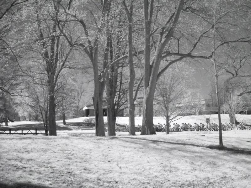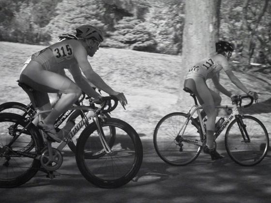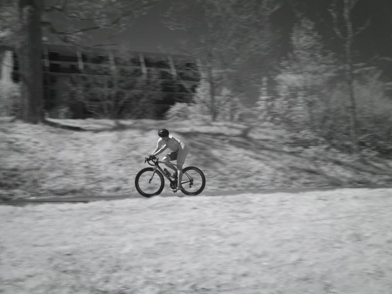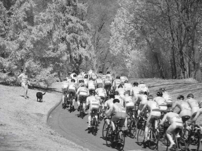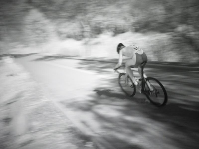 One of my loves is cycling. I enjoy simply plodding along the road, thinking about nothing, or thinking about something, often for hours. I don't generally take pictures while doing this, but I do sometimes while watching others ride. Most of those shown here were taken with an infrared camera. I like the black and white aspect, but mostly I like the dreamy nature of the pictures. Reminiscent of many of my rides.